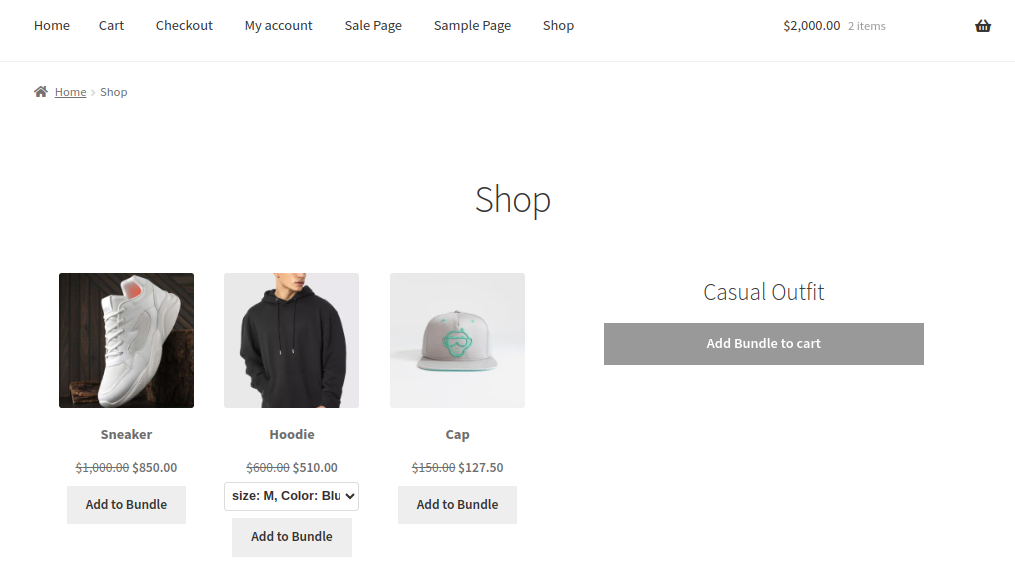 **Screenshot of the Mix And Match Bundled products in the shop page.**