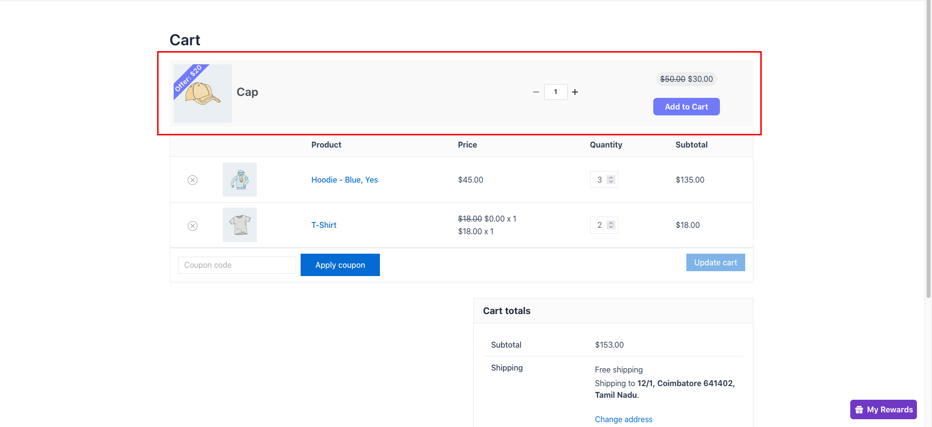 Now the offered product has been successfully added to your cart page. Please ensure to click the "Add to cart" to avail the cart upsell offer
