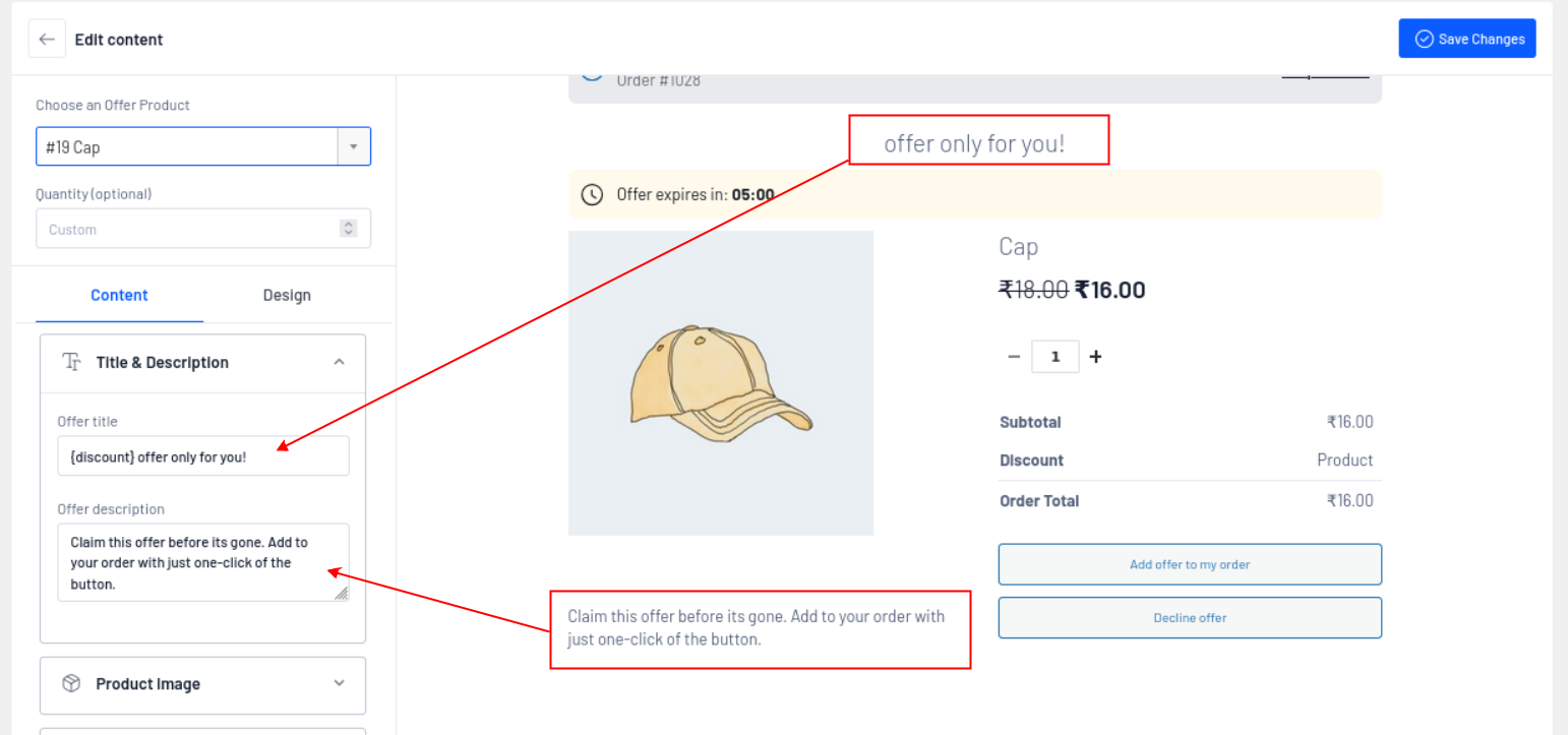 With this option, you can able to change the title & description of the Post-purchase upsell offer