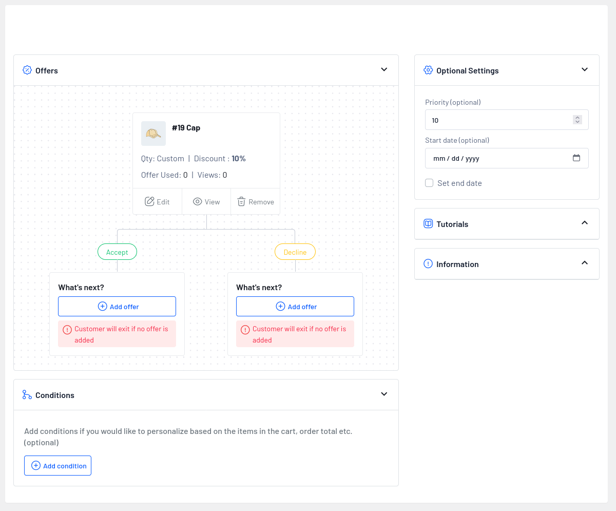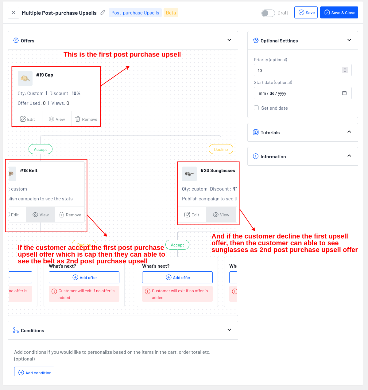 In this scenario, let us see how to show multiple offers in the post-purchase campaign if the customer declines the initial offer presented in the post-purchase upsell campaign.
