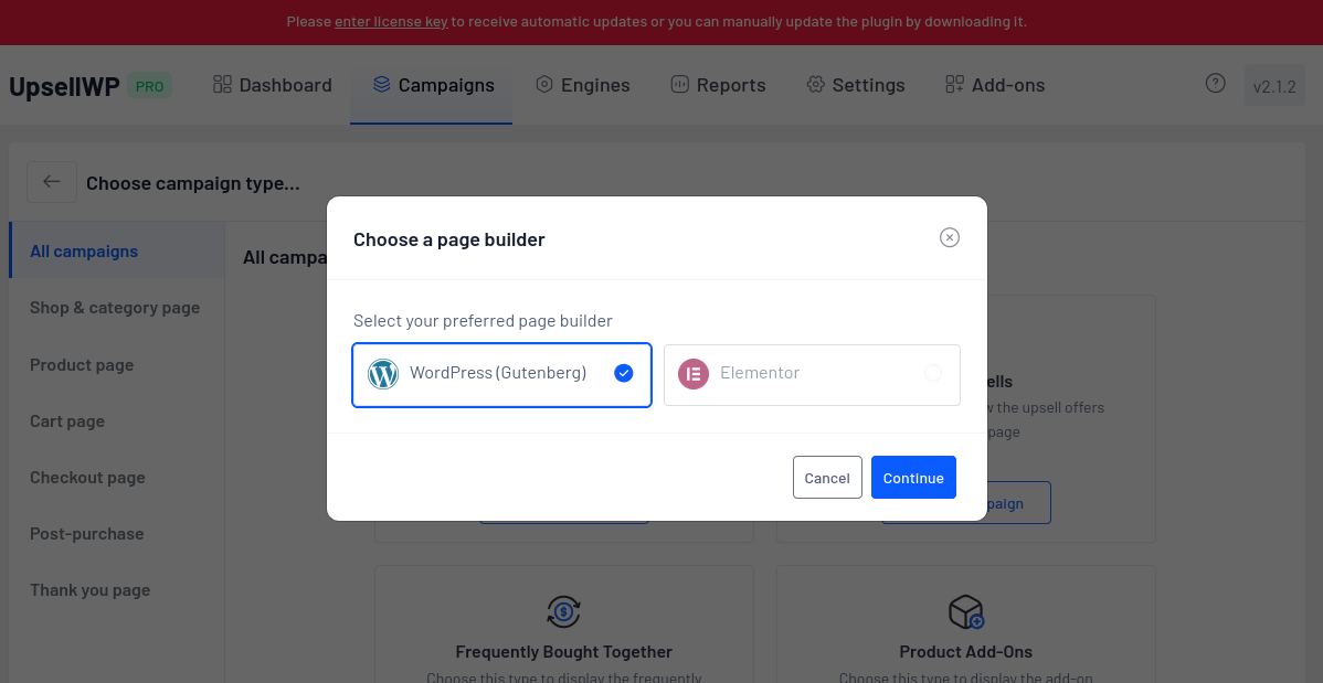 * Go to WordPress dashboard -> UpsellWP -> Create New Campaign -> Choose “Post-purchase”.