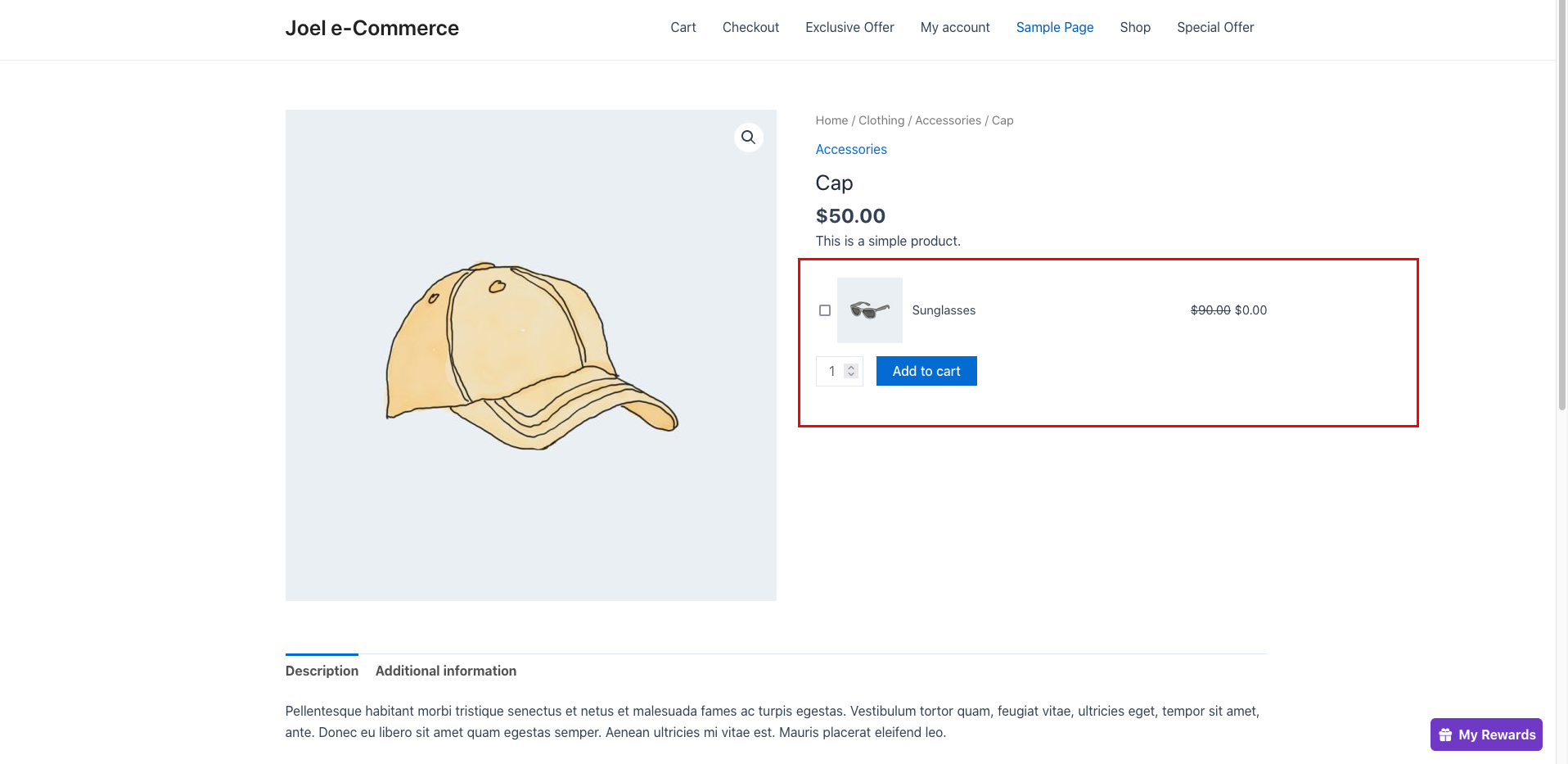 Now the offered Add-on product has been successfully displayed on the product page. Please make sure you select the checkbox to use the offered Add-on product.