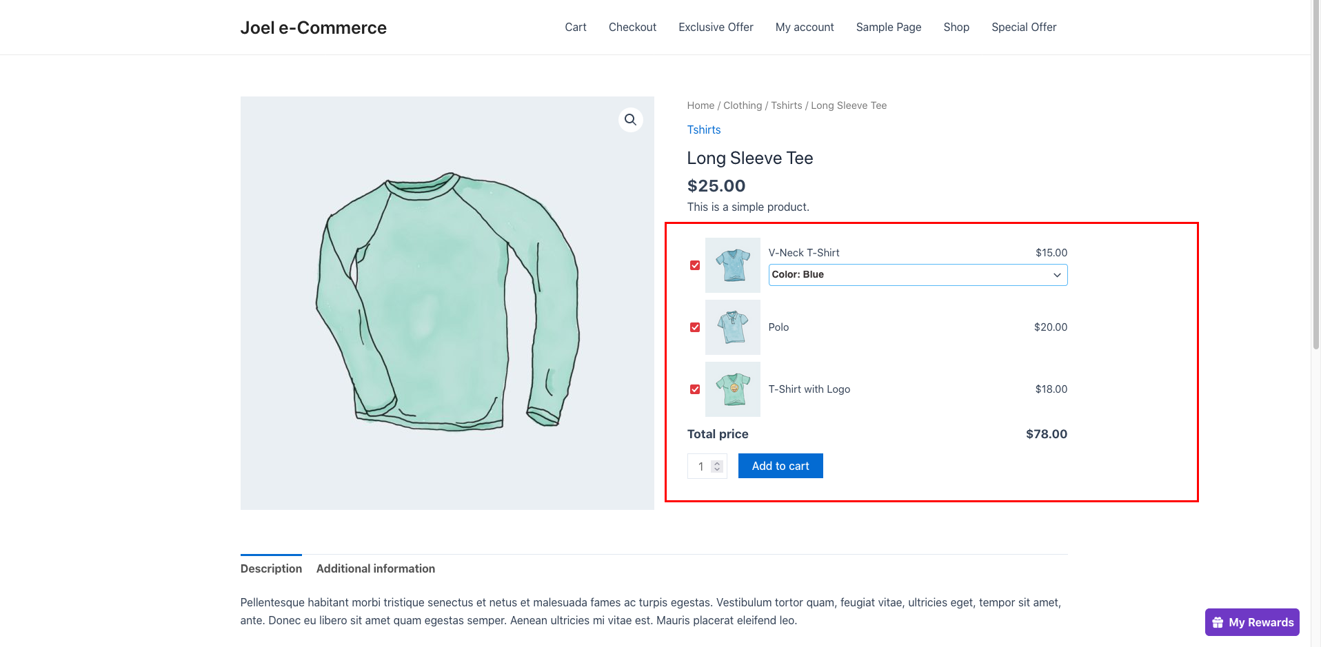 Now the offered Product Add-on product has been successfully displayed on the product page. Please make sure you select the checkbox to use the offered Add-on product.