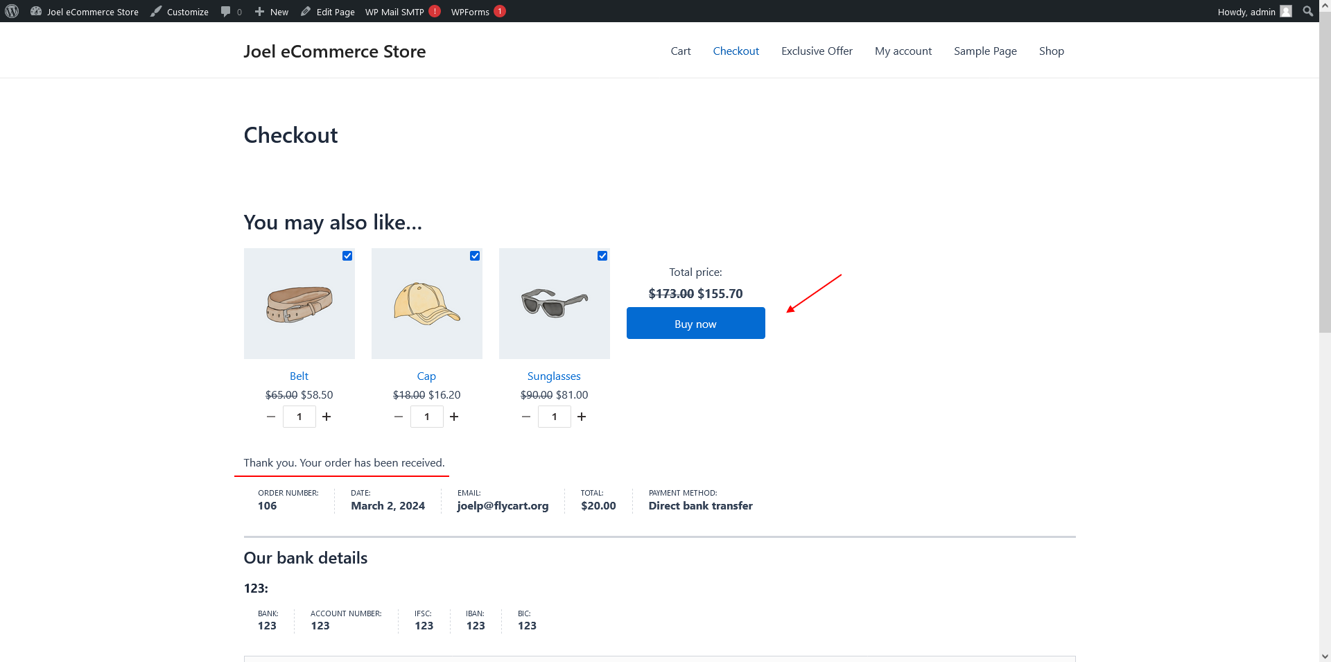 Now, as soon as customers place their order, they'll see Upsell Products displayed on the Thank You Page.