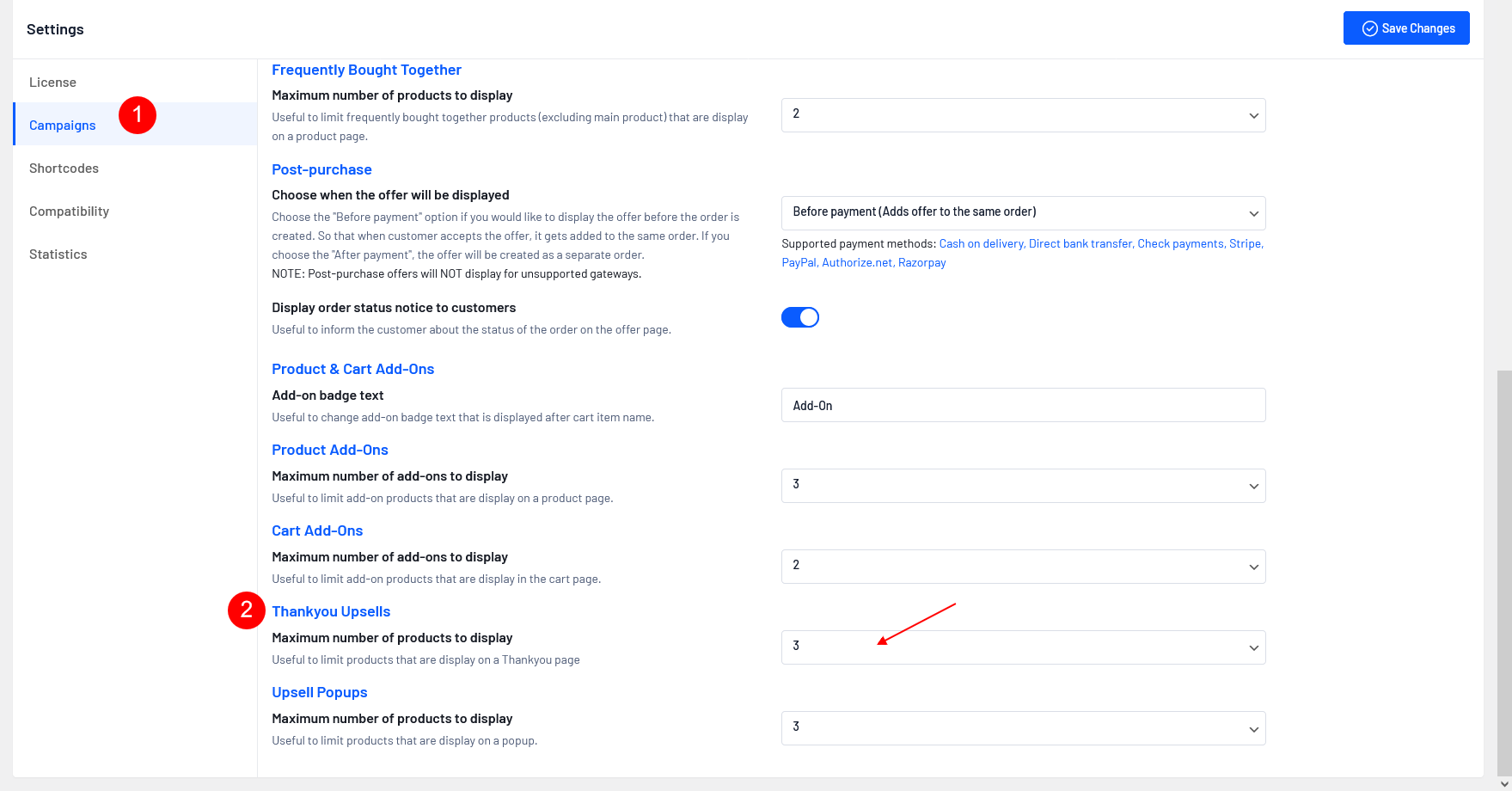 Go to WordPress back end -> UpsellWP -> Settings -> Campaigns and scroll down to find the below setting and save the changes.